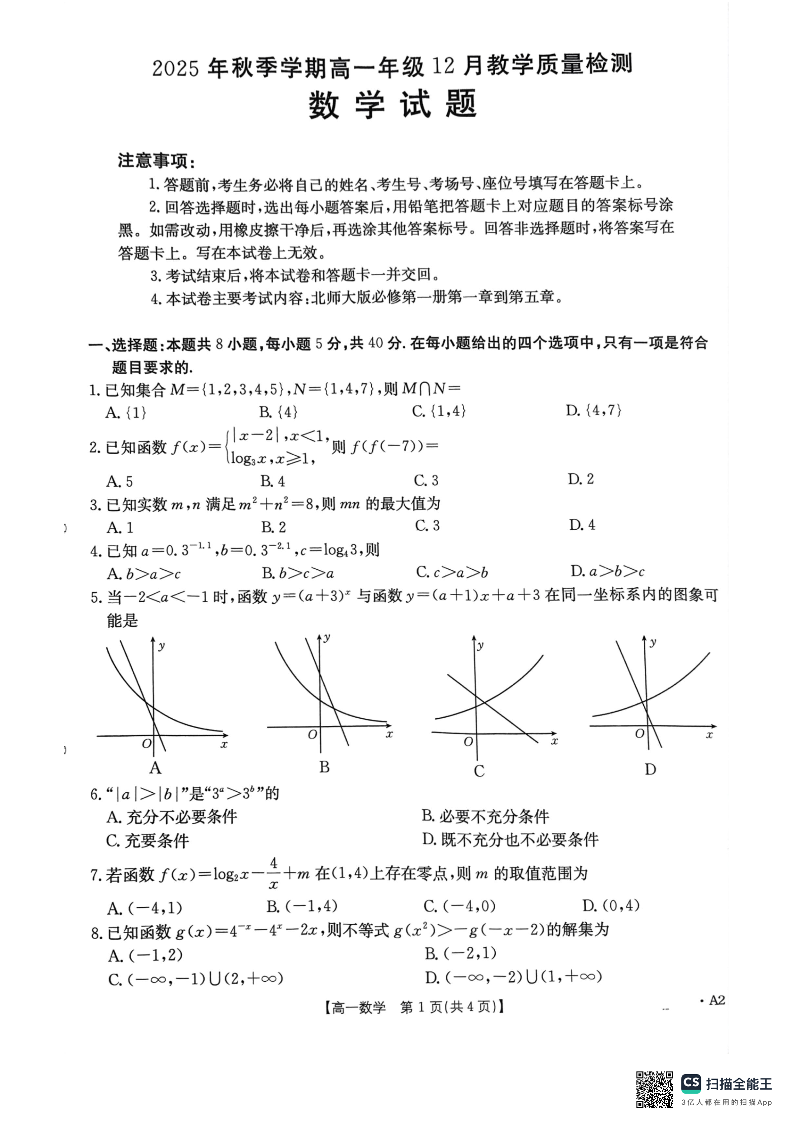 桂林市、贵港市2025年秋季学期高一年级12月教学质量检测 数学.pdf