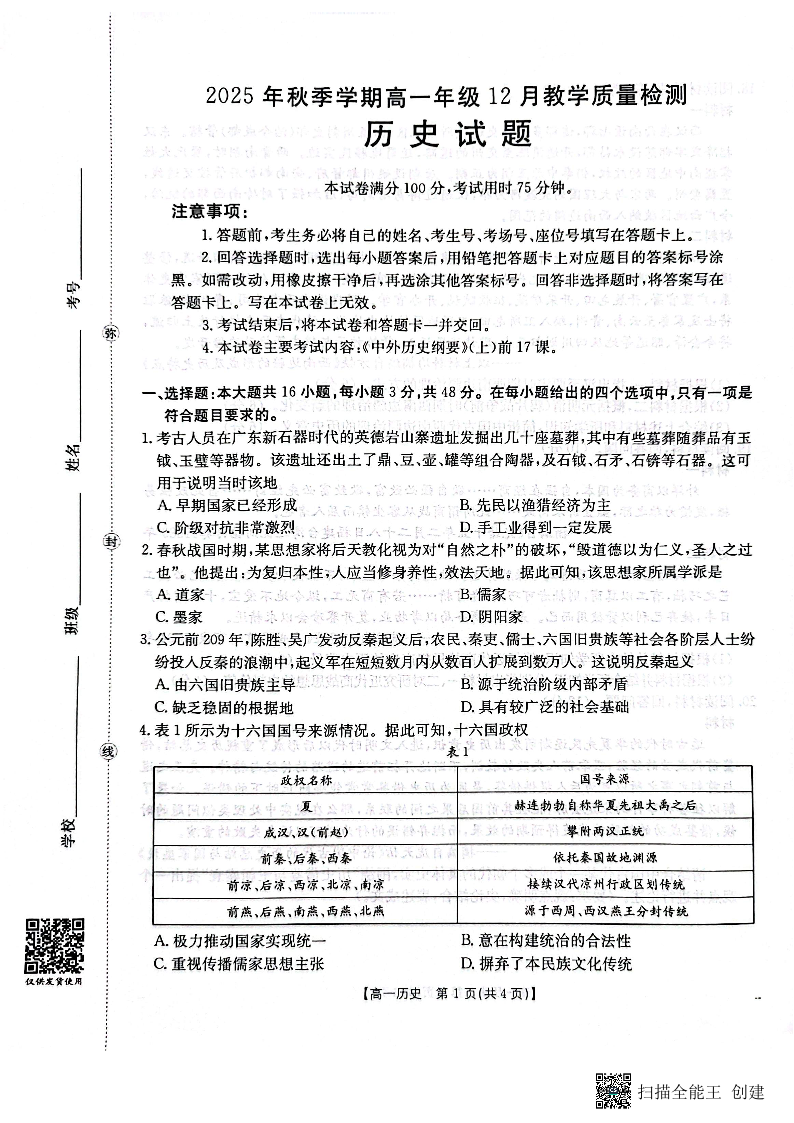 桂林市、贵港市2025年秋季学期高一年级12月教学质量检测 历史.pdf