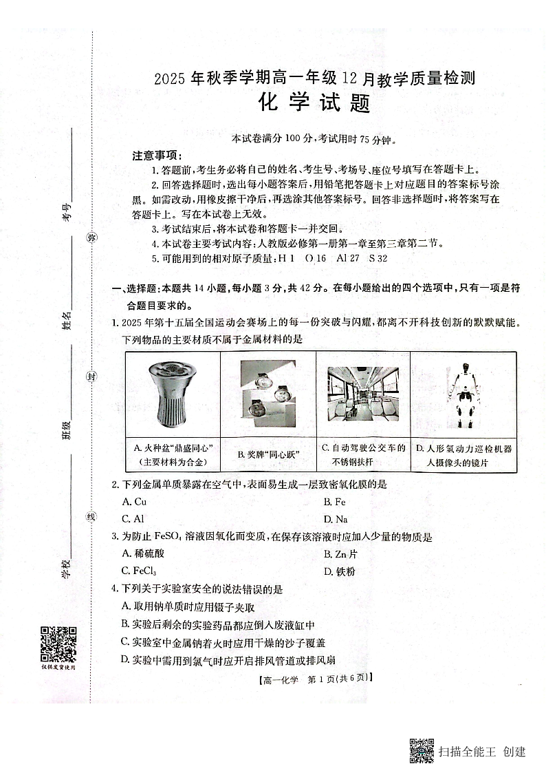 桂林市、贵港市2025年秋季学期高一年级12月教学质量检测 化学.pdf