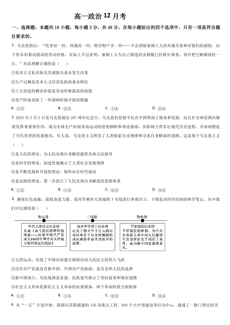 吉林省梅河口市第五中学2025-2026学年高一上学期12月月考 政治试题(含答案).docx