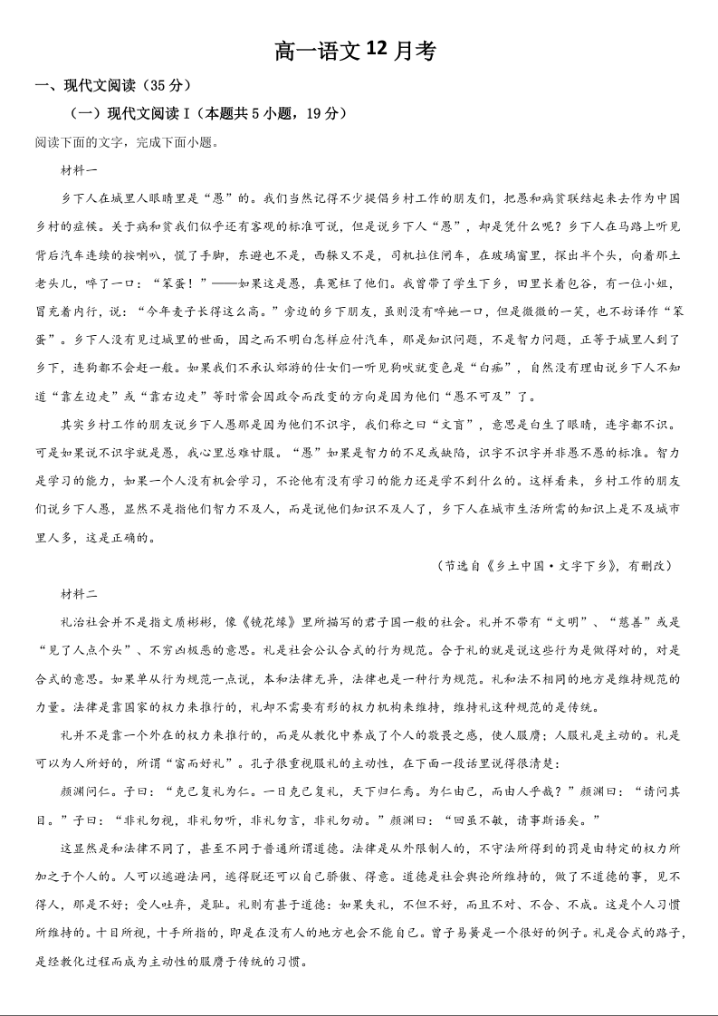 吉林省梅河口市第五中学2025-2026学年高一上学期12月月考 语文试题(含答案).docx