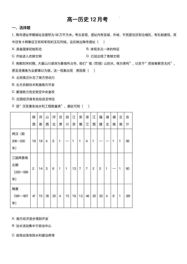 吉林省梅河口市第五中学2025-2026学年高一上学期12月月考 历史试题(含答案).pdf