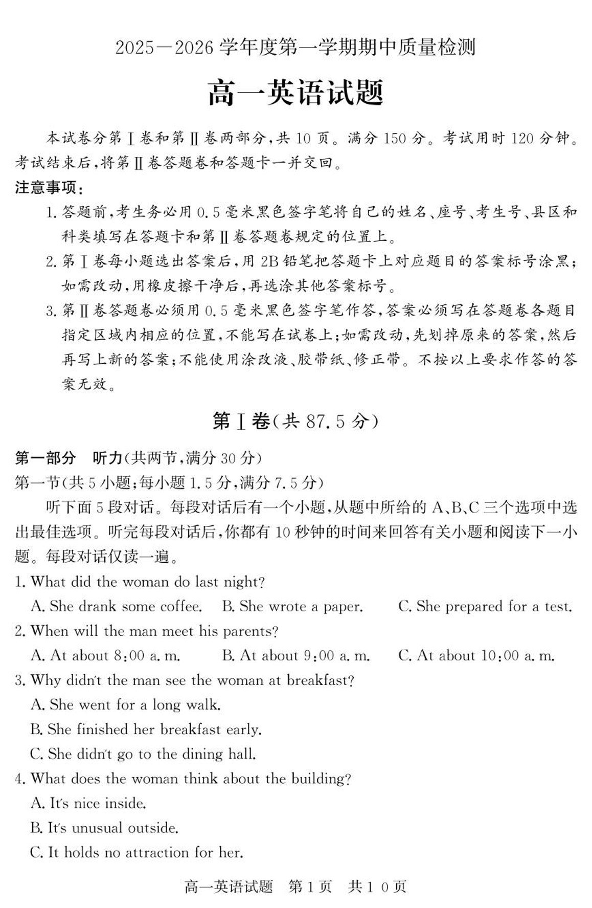 山东省济宁市兖州区2025-2026学年高一上学期期中质量检测 英语.pdf