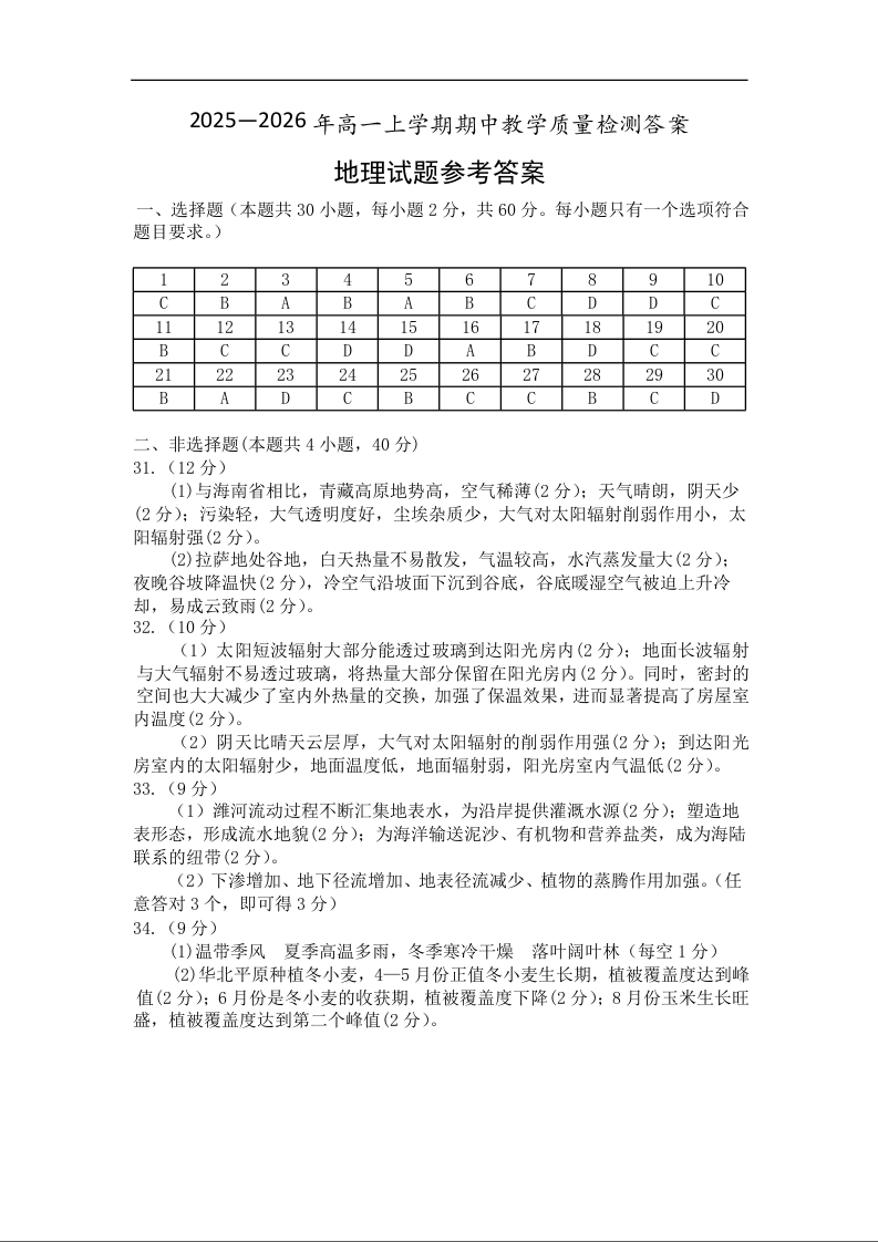 山东省济宁市兖州区2025-2026学年高一上学期期中质量检测 地理答案.docx