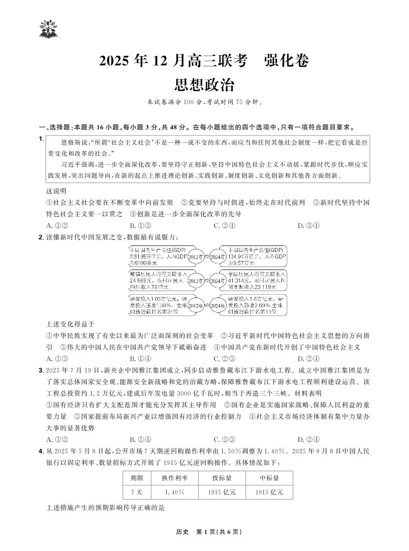 东北三省精准教学2025年12月高三联考强化卷 政治.pdf