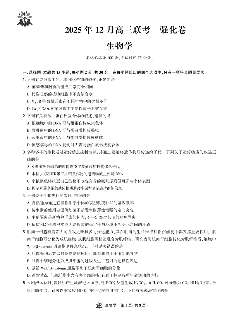 东北三省精准教学2025年12月高三联考强化卷 生物.pdf
