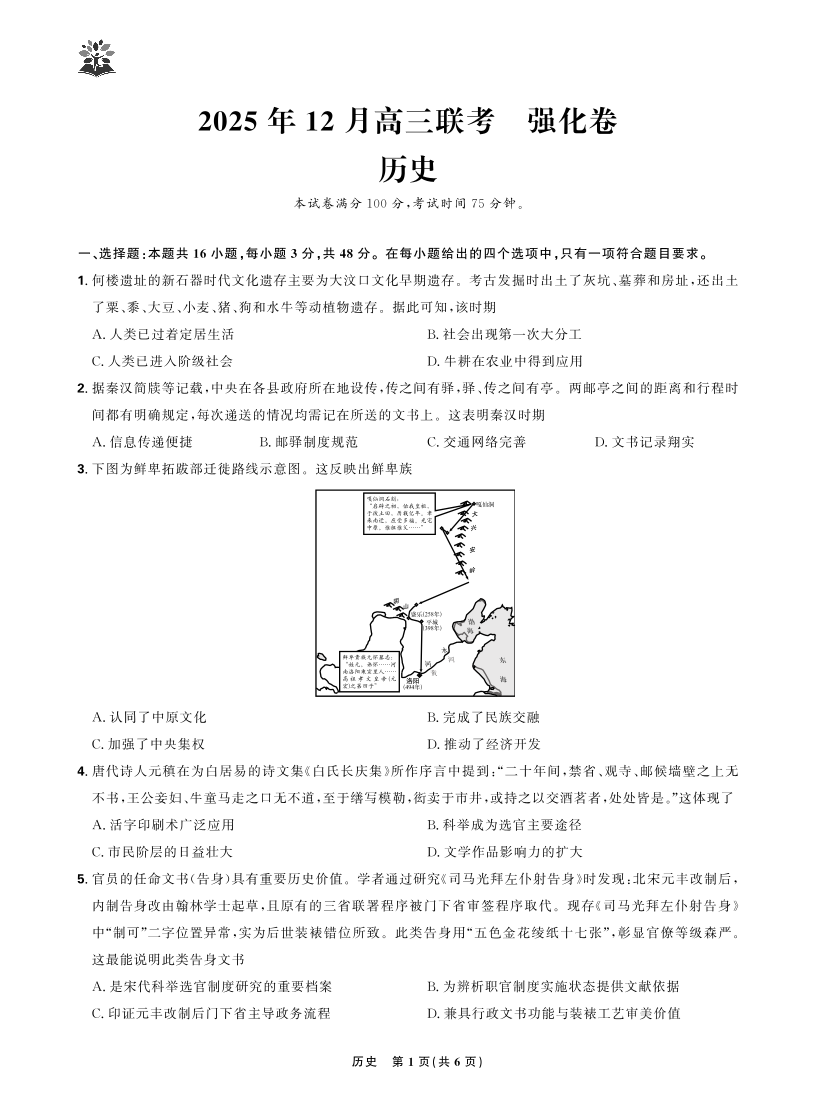 东北三省精准教学2025年12月高三联考强化卷 历史.pdf