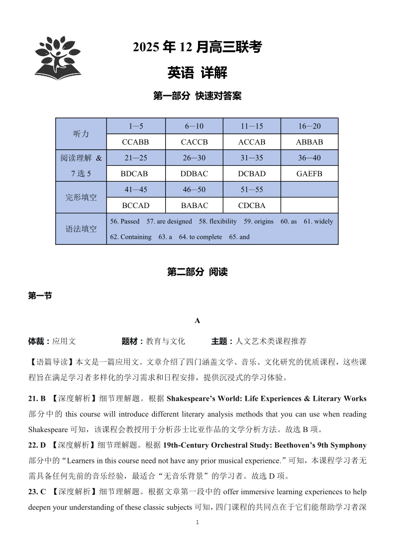 东北三省精准教学2025年12月高三联考 英语答案.pdf