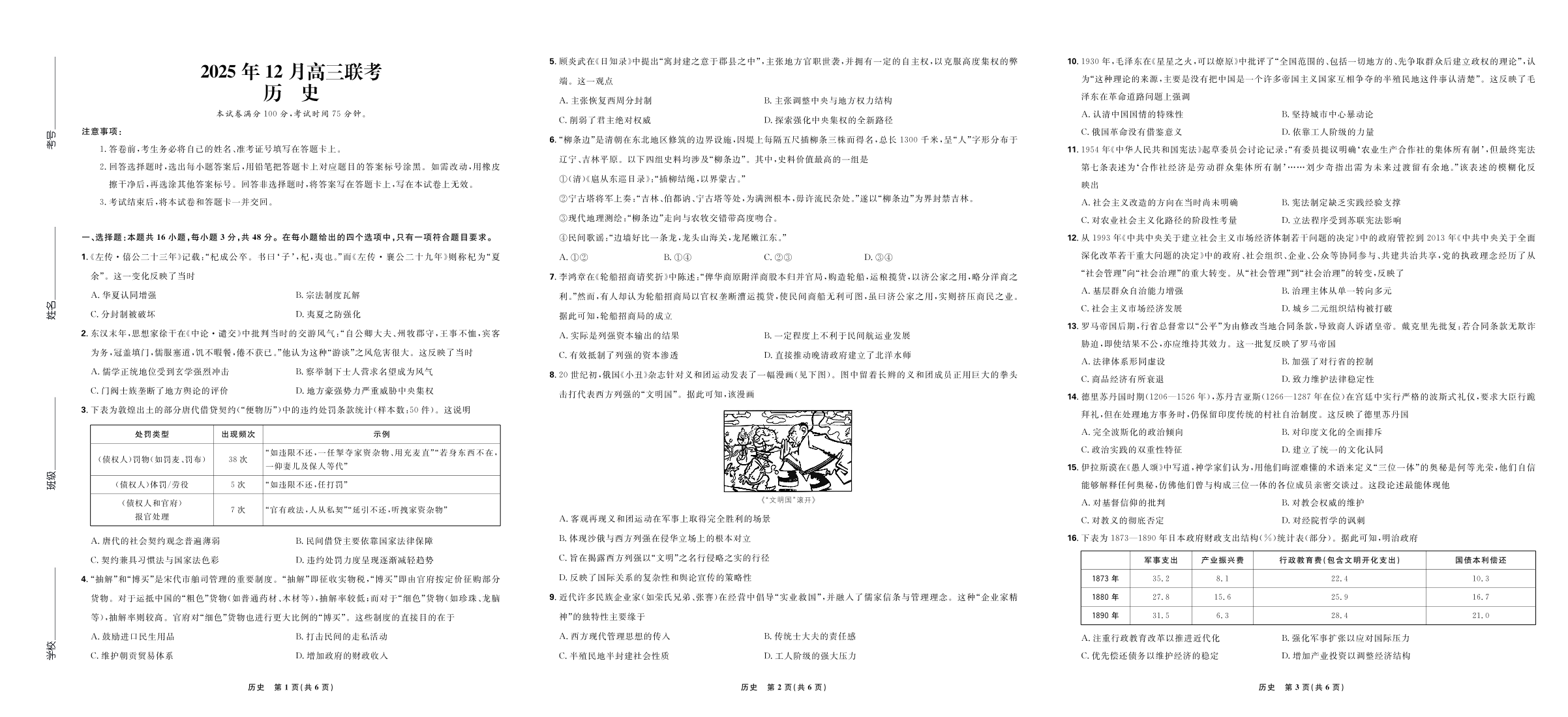 东北三省精准教学2025年12月高三联考 历史.pdf
