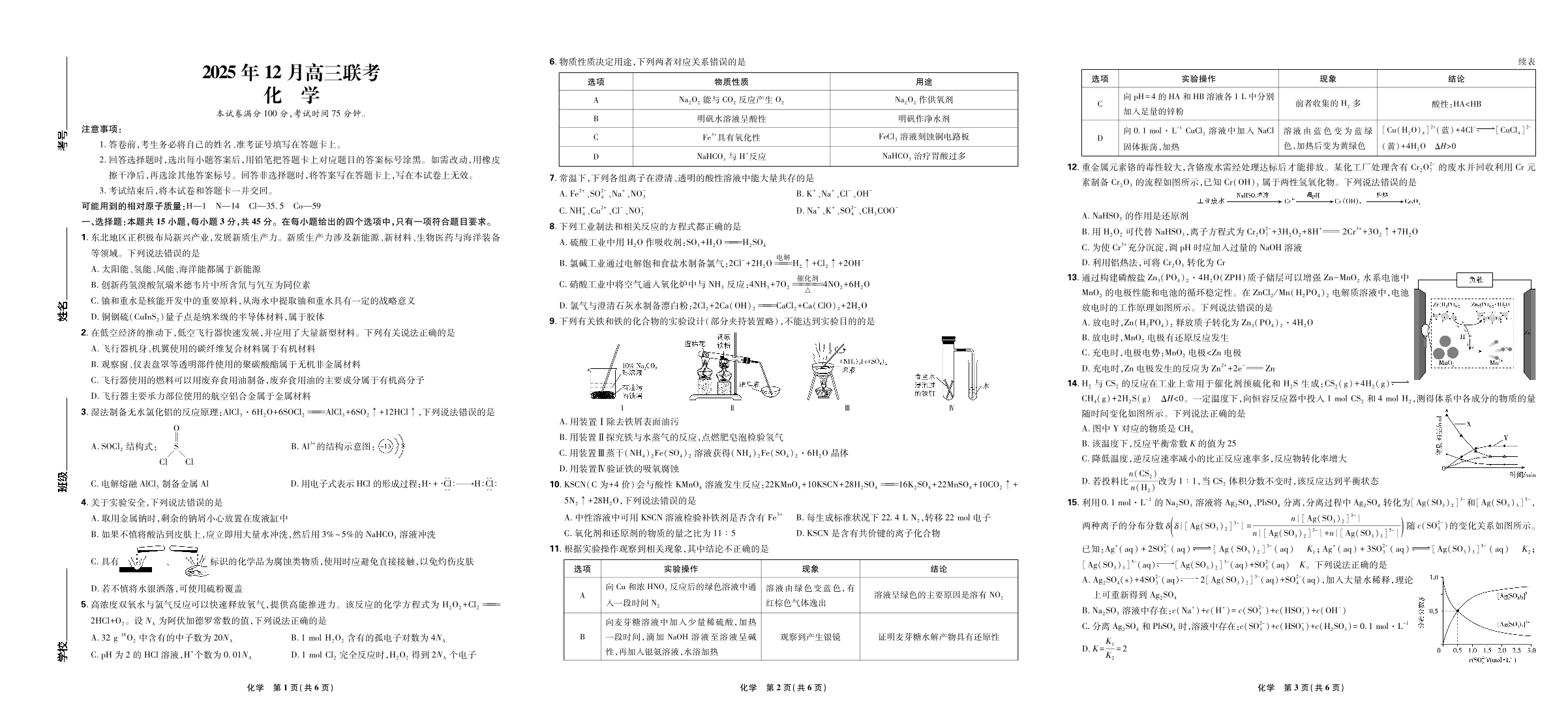 东北三省精准教学2025年12月高三联考 化学.pdf