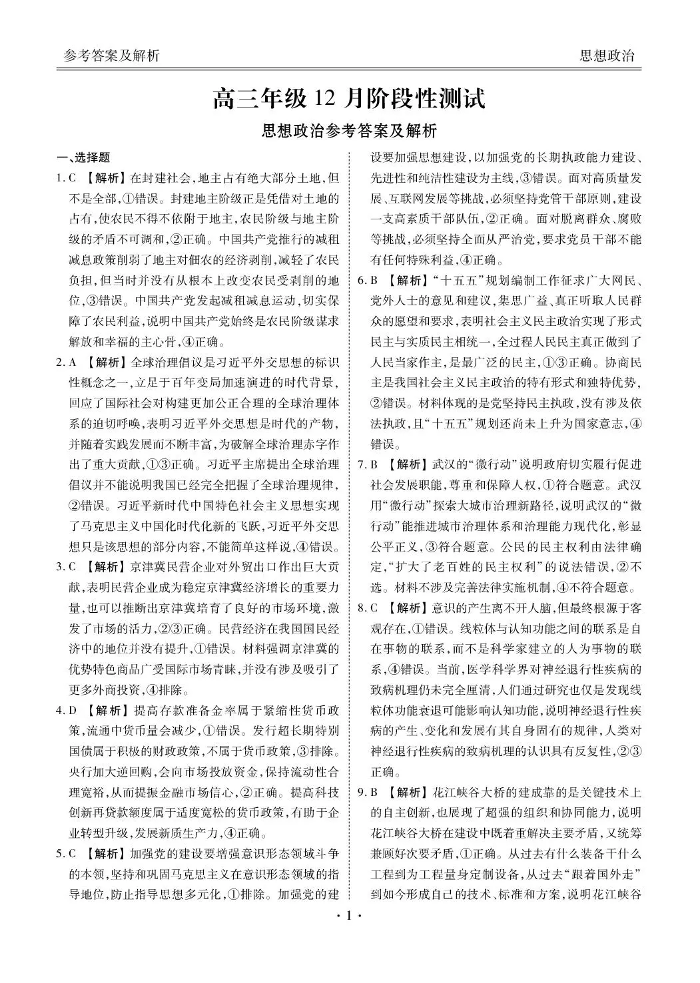 湖北省衡水金卷2026届高三年级12月阶段性测试 政治答案.pdf