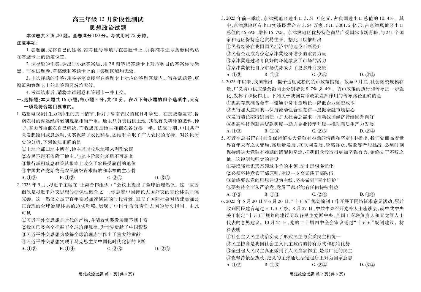 湖北省衡水金卷2026届高三年级12月阶段性测试 政治.pdf