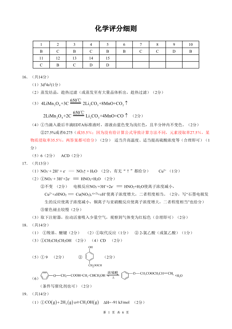 云学联盟2025-2026学年高三上学期12月月考 化学答案.pdf
