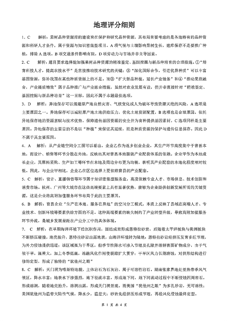 云学联盟2025-2026学年高三上学期12月月考 地理答案.pdf