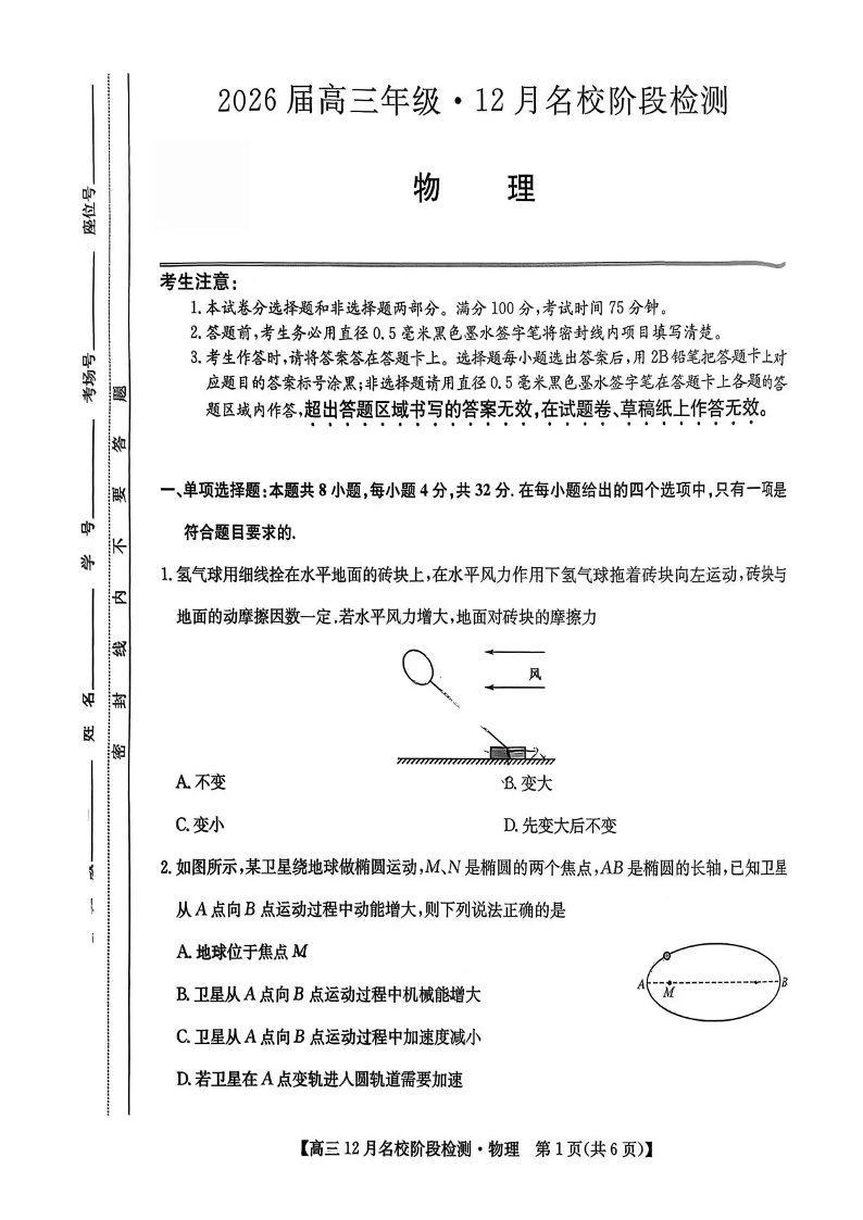 耀正优2026届高三年级·12月名校阶段检测 物理.pdf