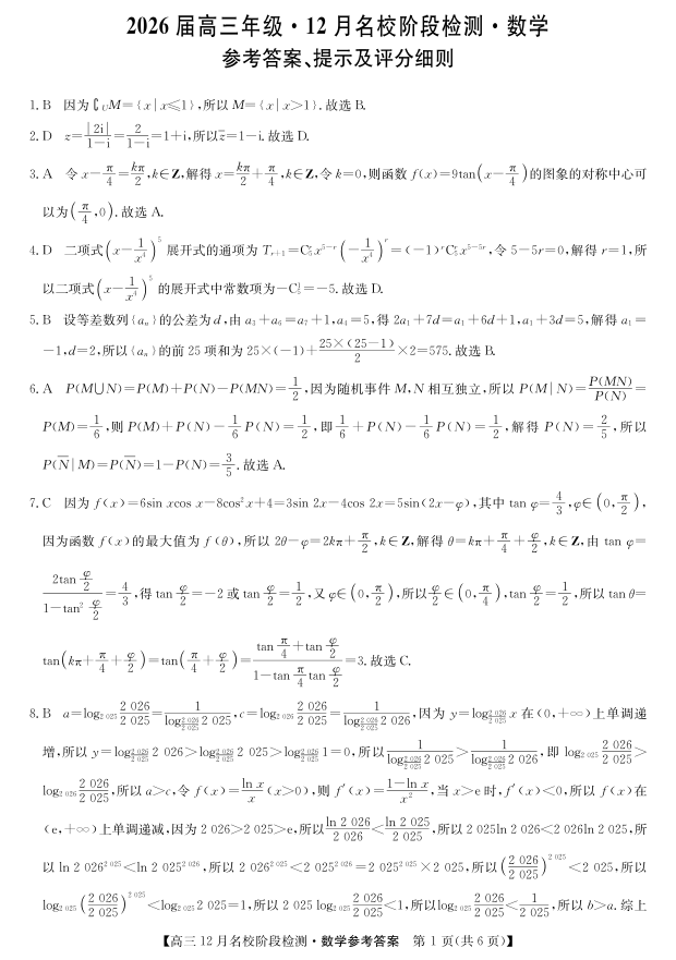 耀正优2026届高三年级·12月名校阶段检测 数学答案.pdf