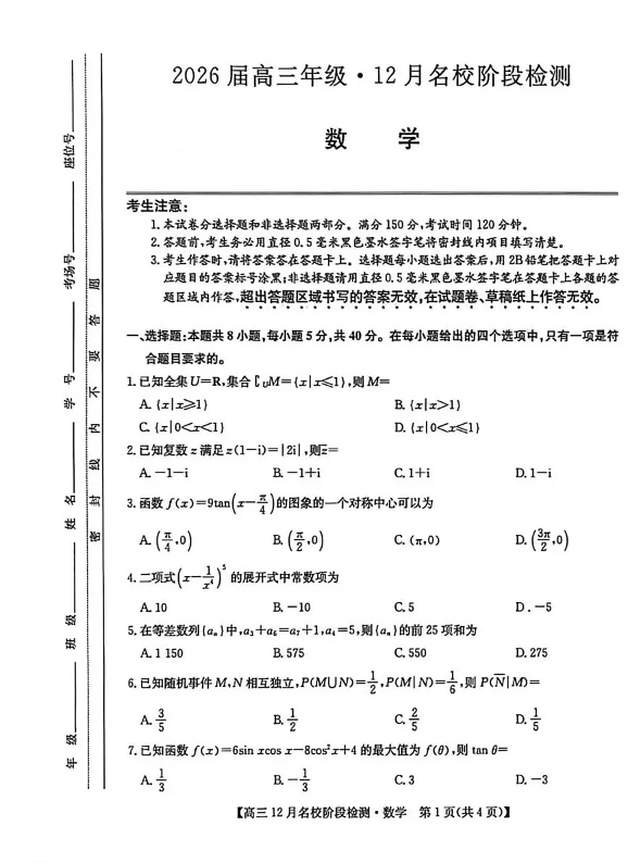 耀正优2026届高三年级·12月名校阶段检测 数学.pdf