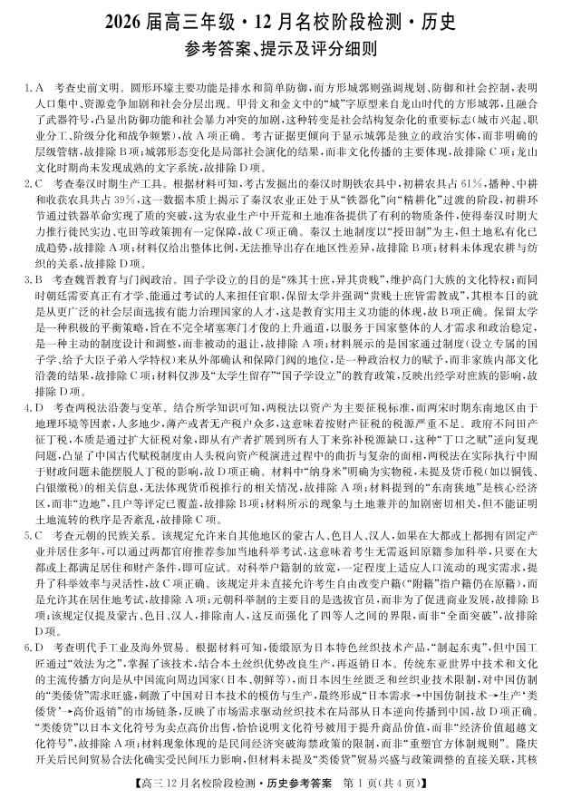 耀正优2026届高三年级·12月名校阶段检测 历史答案.pdf