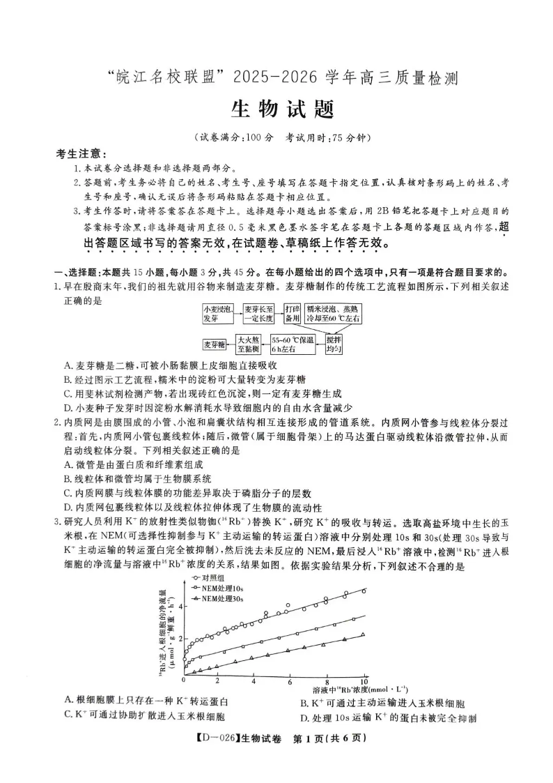 “皖江名校联盟”2025-2026学年高三质量检测 生物.pdf