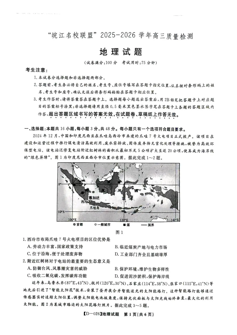 “皖江名校联盟”2025-2026学年高三质量检测 地理.pdf