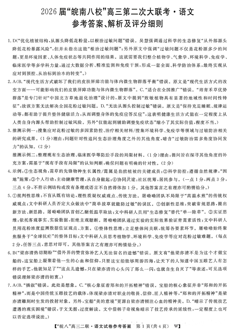 2026届“皖南八校”高三第二次大联考 语文答案.pdf