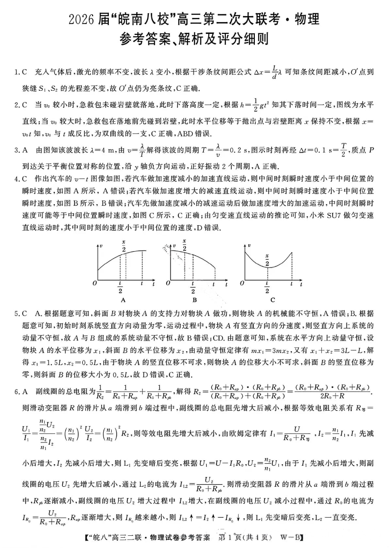 2026届“皖南八校”高三第二次大联考 物理答案.pdf