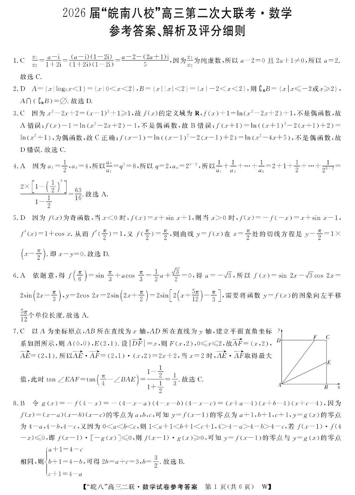 2026届“皖南八校”高三第二次大联考 数学答案.pdf