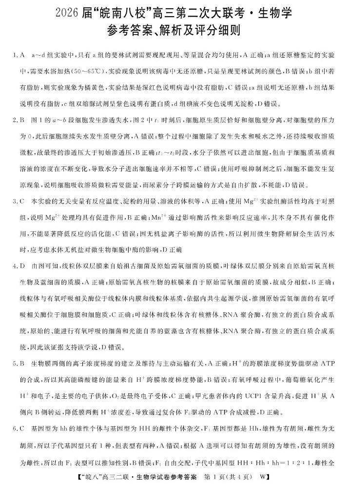 2026届“皖南八校”高三第二次大联考 生物答案.pdf