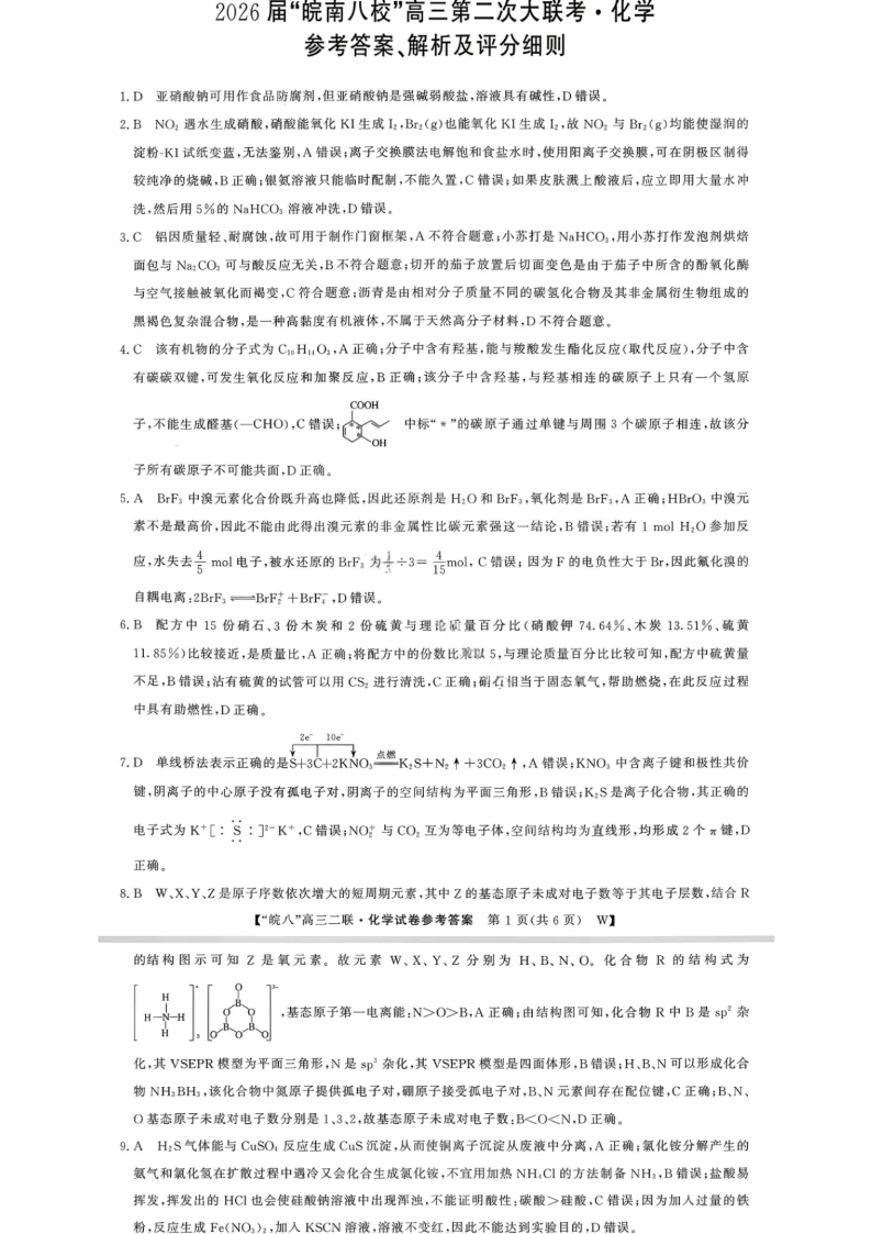 2026届“皖南八校”高三第二次大联考 化学答案.pdf