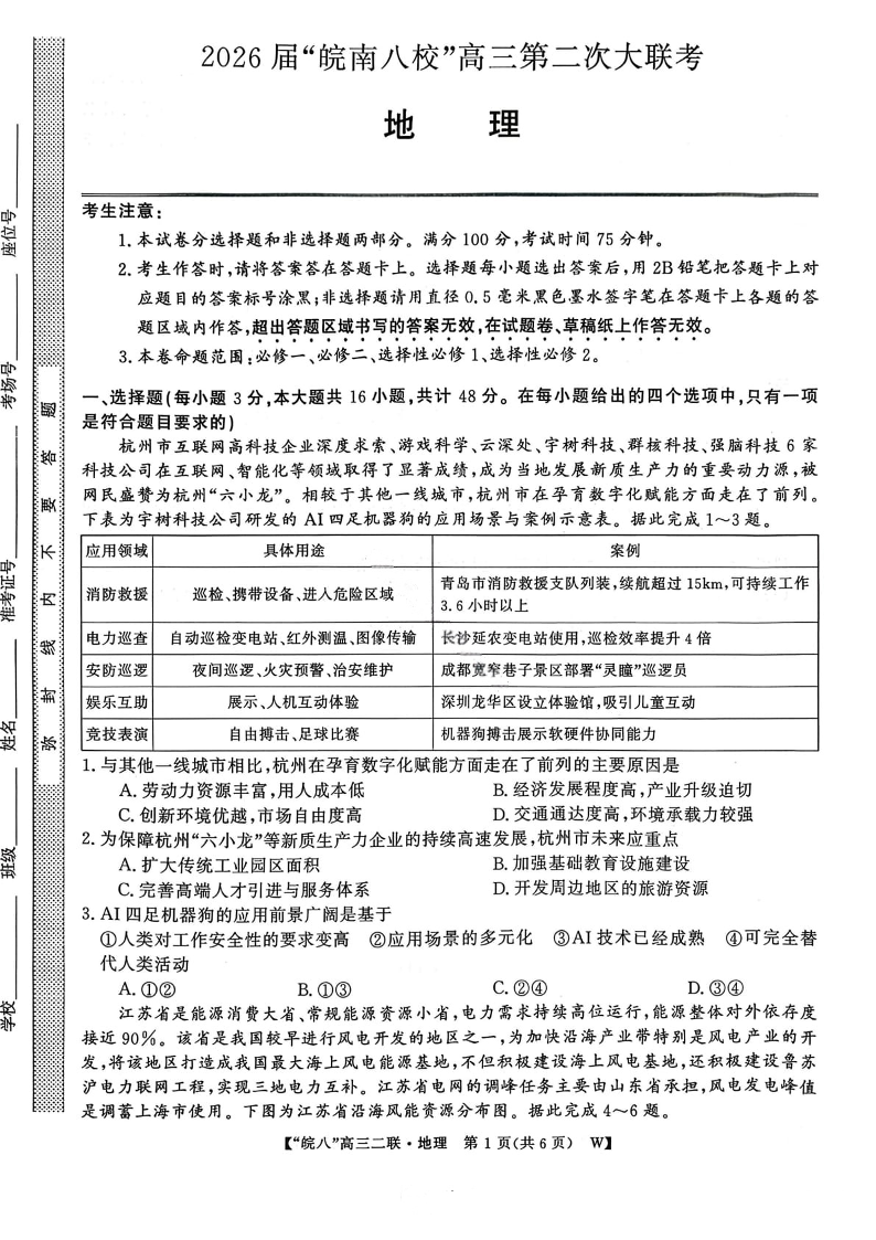 2026届“皖南八校”高三第二次大联考 地理.pdf
