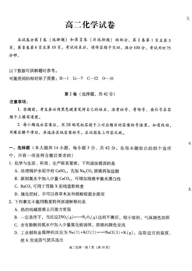 贵阳一中2024级高二年级教学质量监测卷(二)化学.pdf