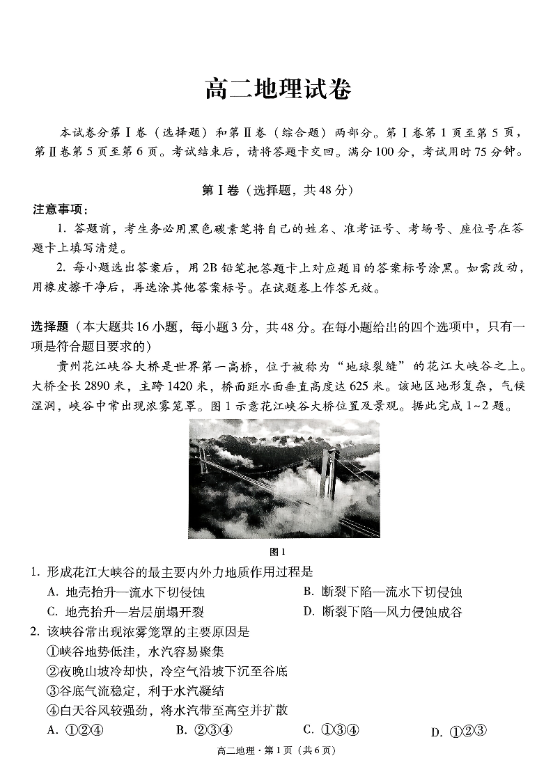 贵阳一中2024级高二年级教学质量监测卷(二)地理.pdf