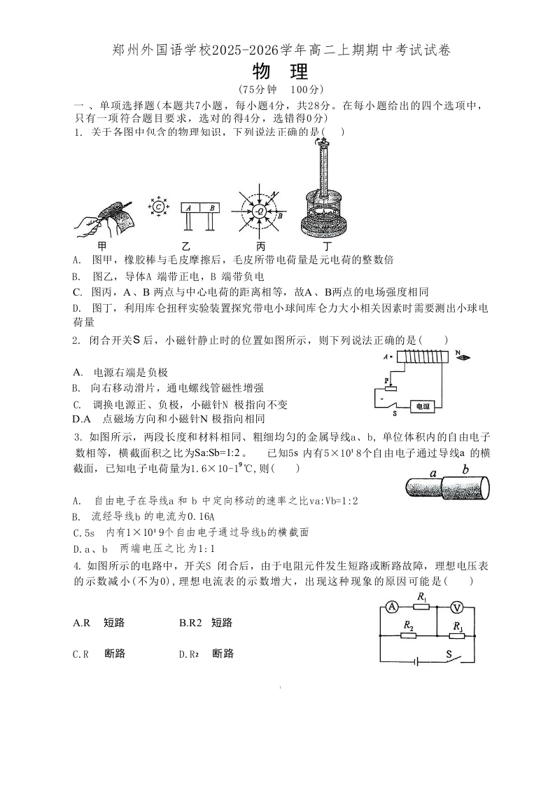 郑州外国语学校2025-2026学年高二上学期期中考试 物理试题(含答案).docx