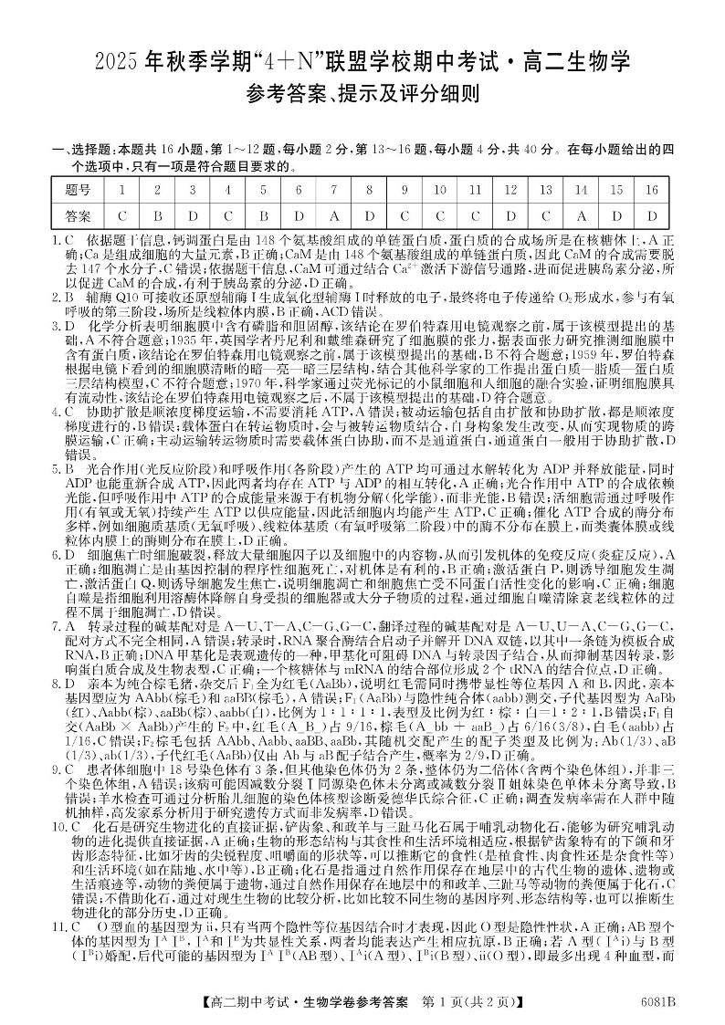 南宁市2025秋季学期4+N联盟学校高二期中考试 生物答案.pdf