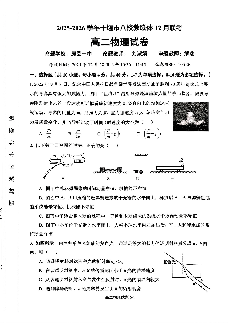 湖北省2025-2026学年十堰市八校教联体高二年级12月联考 物理试题(含答案).pdf