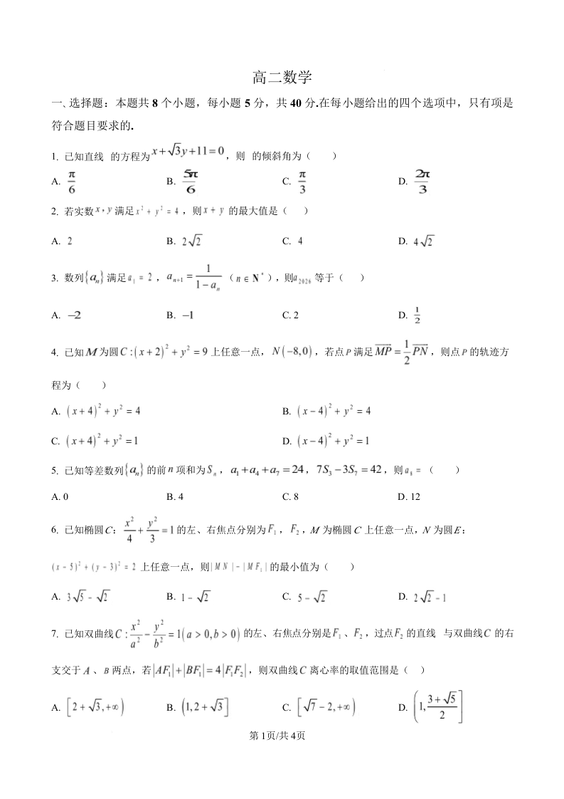 湖北省江夏一中、汉阳一中、洪山高中2025-2026学年高二上学期12月检测 数学.docx