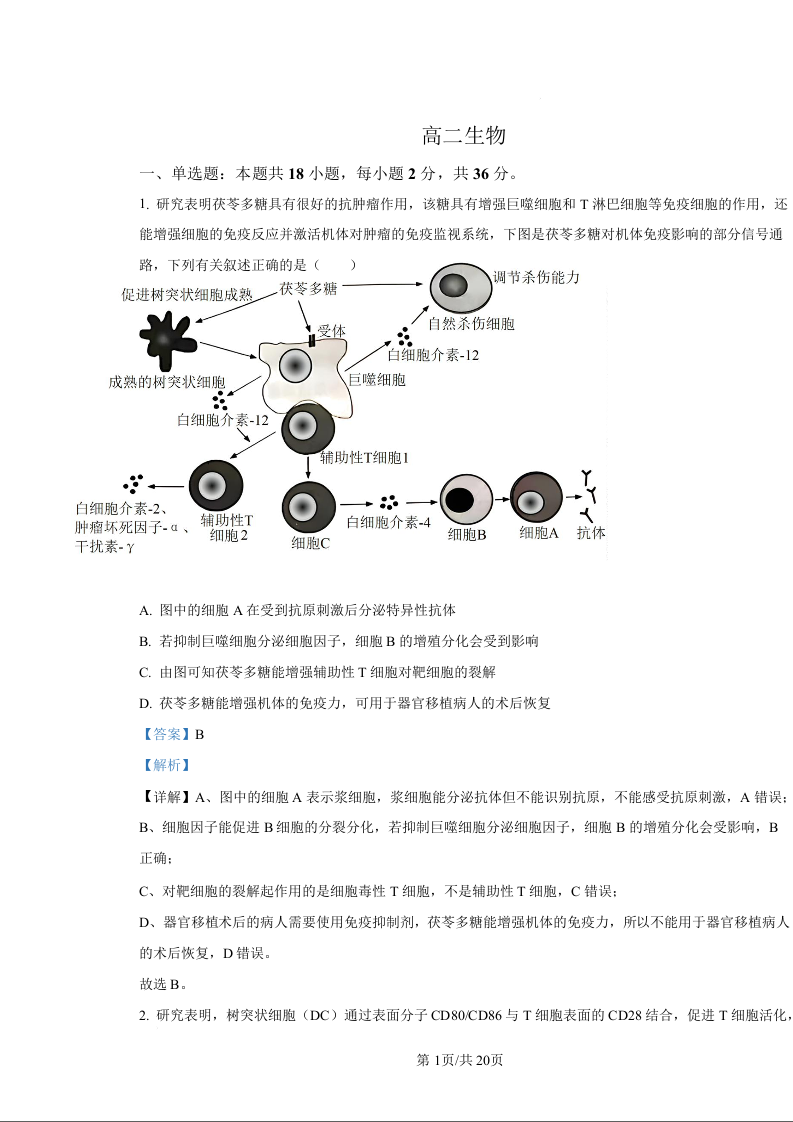 湖北省江夏一中、汉阳一中、洪山高中2025-2026学年高二上学期12月检测 生物答案.docx