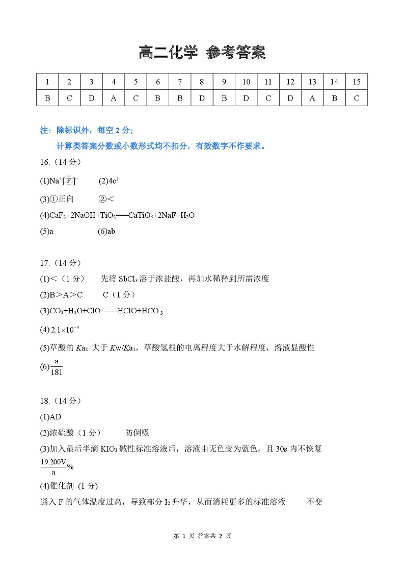 湖北省江夏一中、汉阳一中、洪山高中2025-2026学年高二上学期12月检测 化学答案.pdf