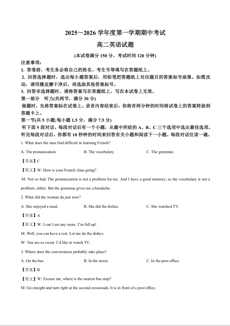 江苏省徐州市2025-2026学年高二上学期期中考试 英语试题(含答案).docx