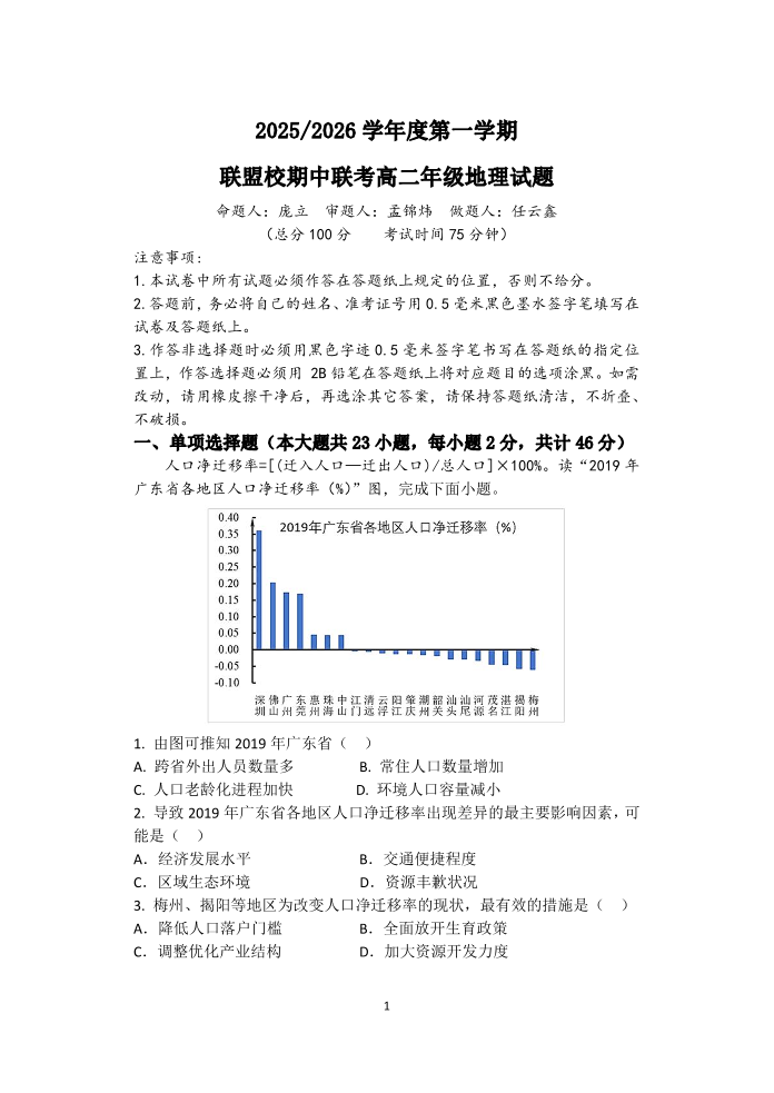 江苏省盐城市五校2025-2026学年高二上学期期中联考 地理试题(含答案).pdf