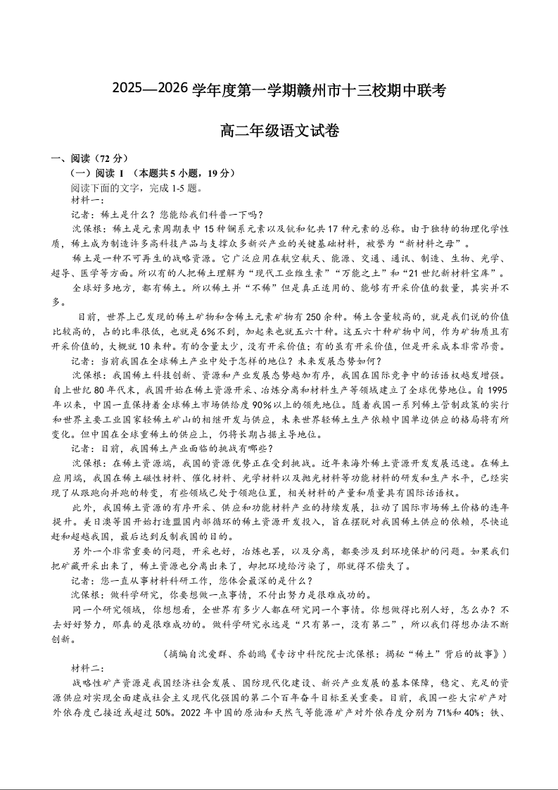 江西省赣州市十三校2025-2026学年高二上学期期中联考 语文试题(含答案).docx
