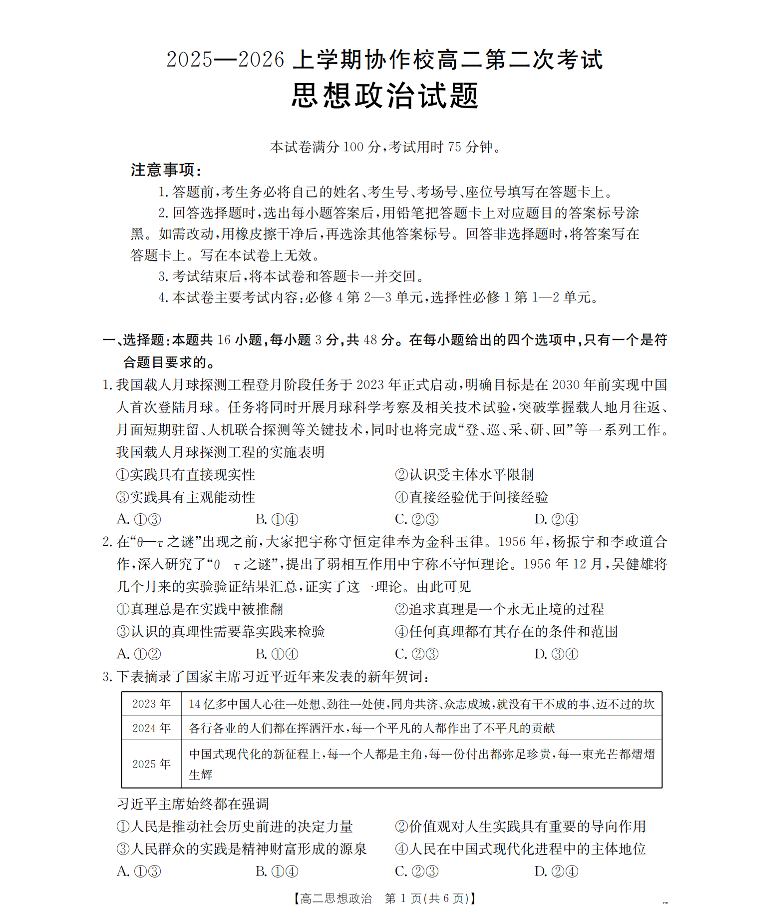 辽宁省葫芦岛市(县)2025-2026学年高二上学期协作校第二次考试 政治.pdf