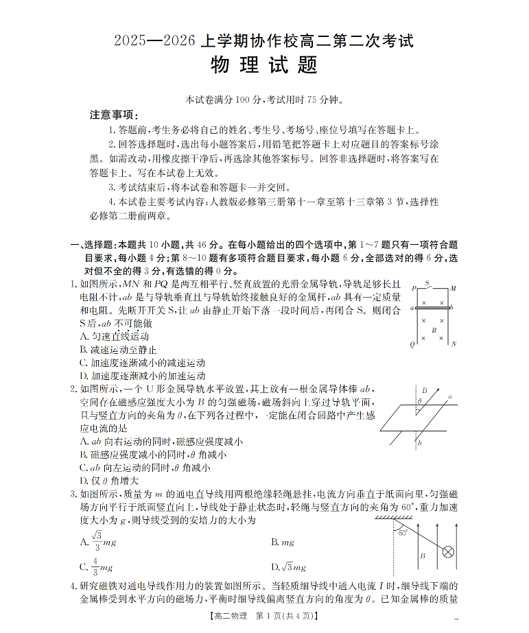 辽宁省葫芦岛市(县)2025-2026学年高二上学期协作校第二次考试 物理.pdf