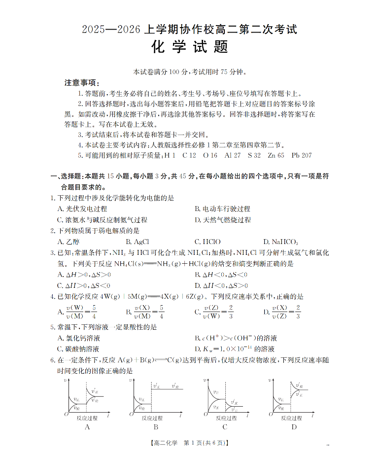 辽宁省葫芦岛市(县)2025-2026学年高二上学期协作校第二次考试 化学.pdf