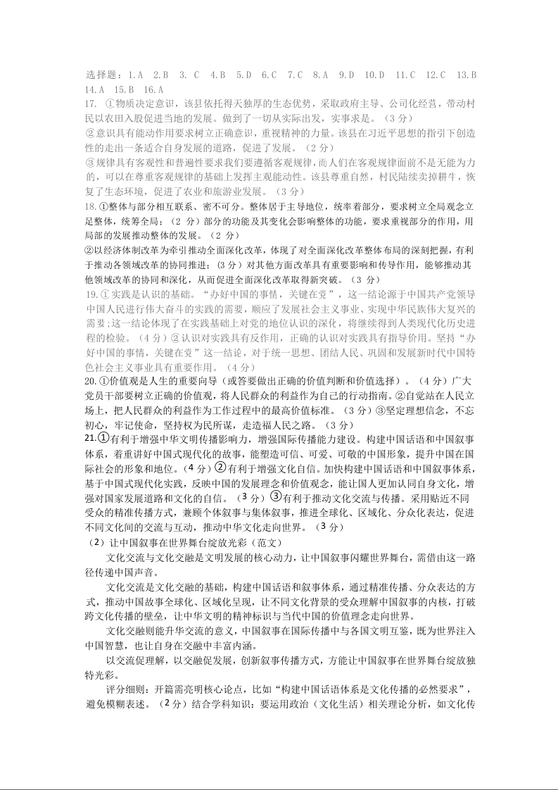 南充高中高2024级第三学期第二次月考 政治答案.docx