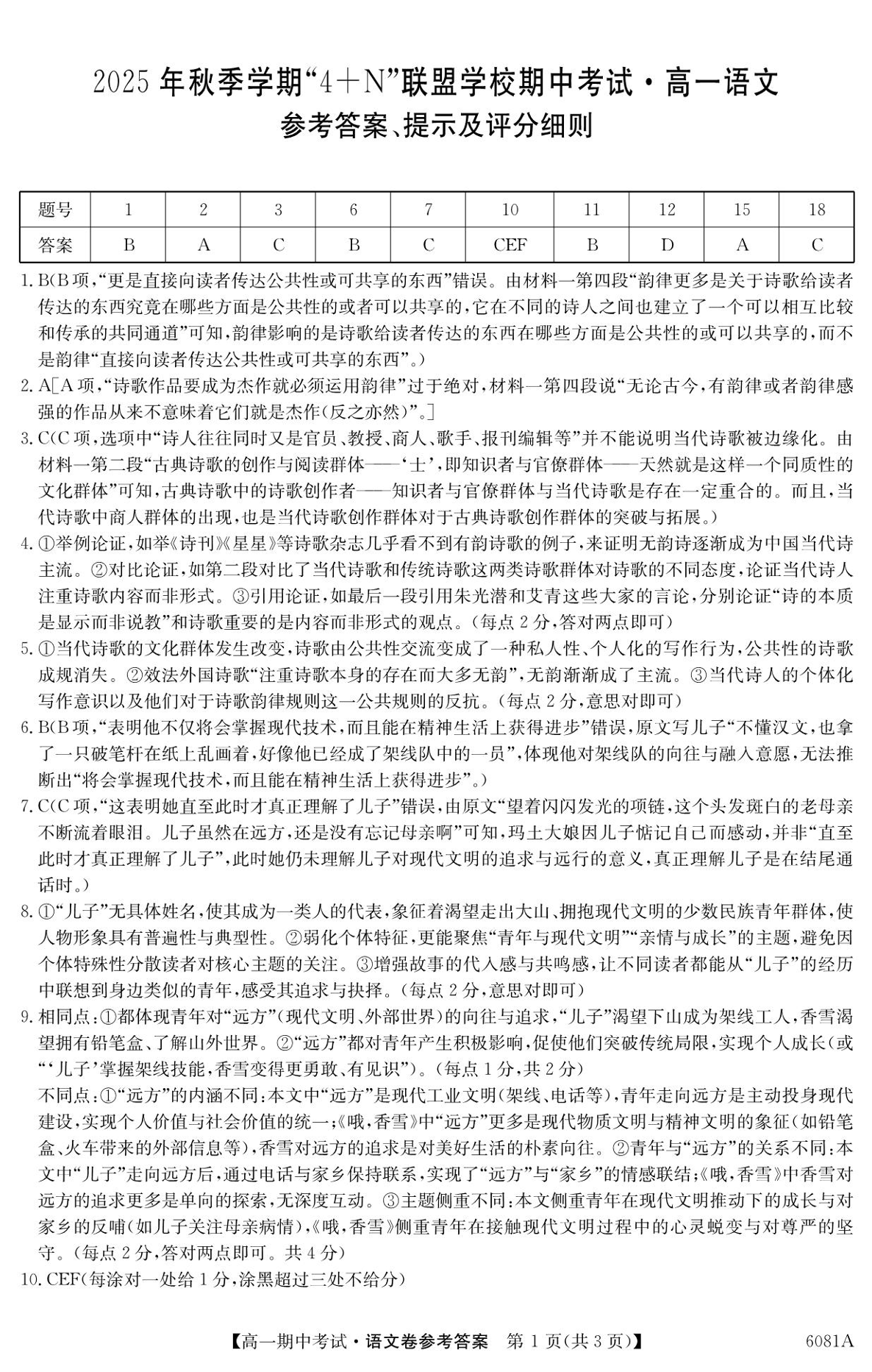南宁市2025年秋季学期4+N联盟学校高一年级12月期中考试 语文答案.pdf