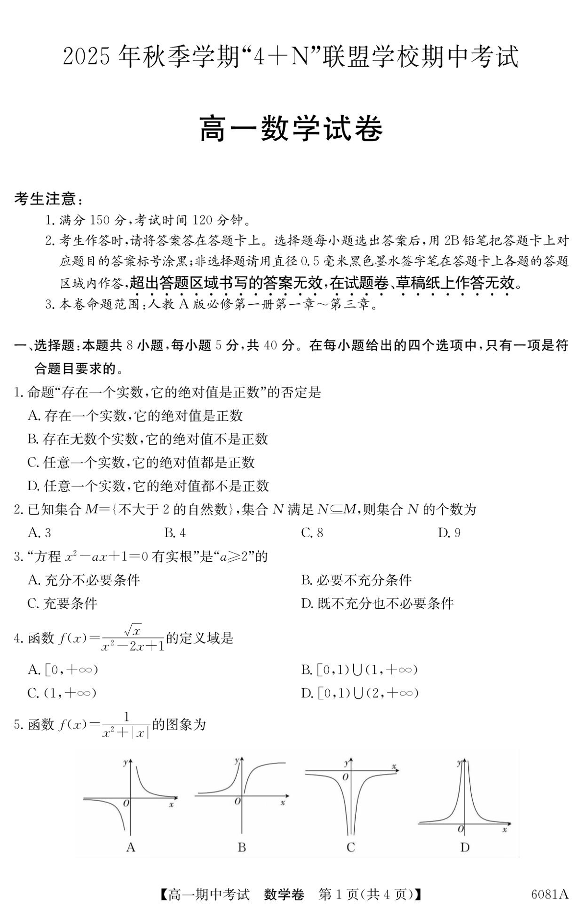 南宁市2025年秋季学期4+N联盟学校高一年级12月期中考试 数学.pdf