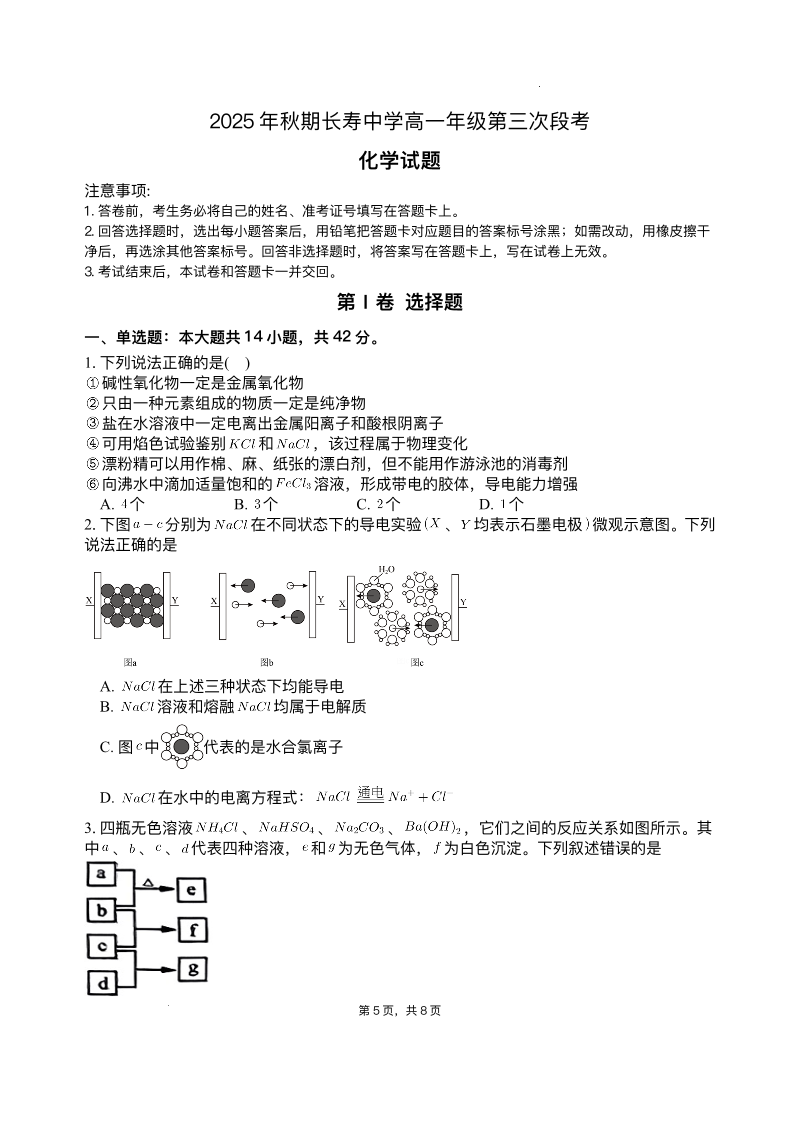 重庆市长寿中学校2025-2026学年高一上学期12月月考 化学试题(含答案).pdf