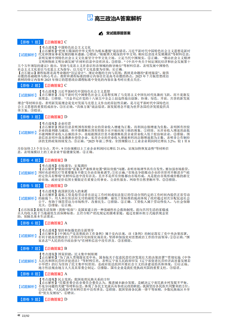辽宁省点石联考2026届高三上学期12月联考考后巩固卷 政治答案.pdf