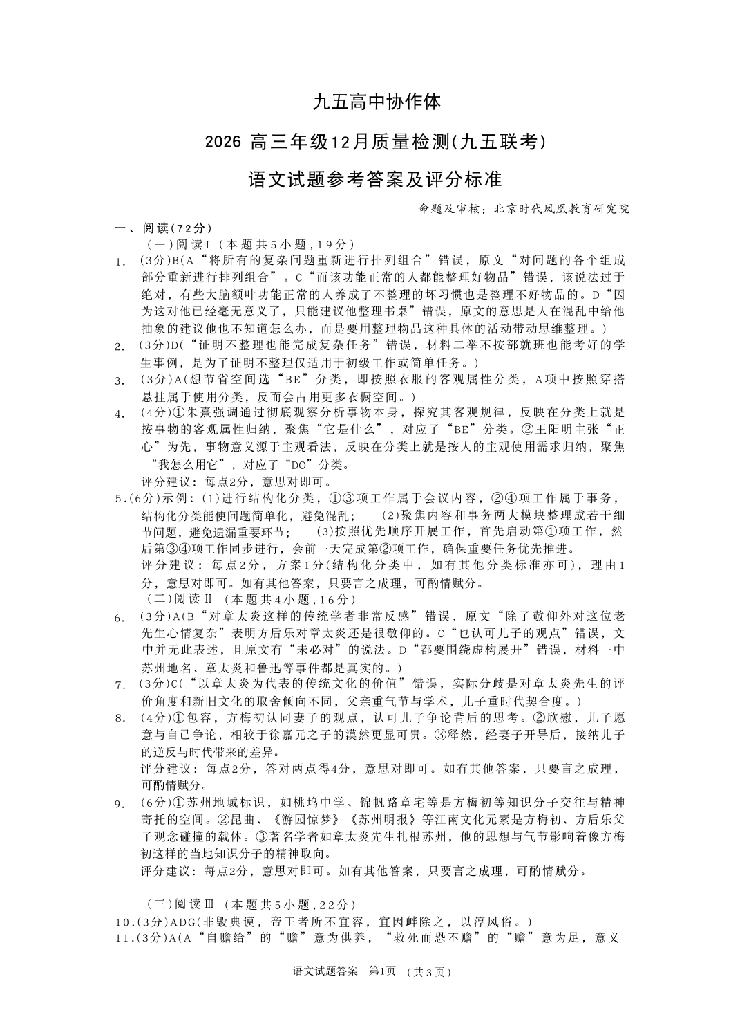 山东省·九五高中协作体2026届高三年级12月质量检测 语文答案.pdf